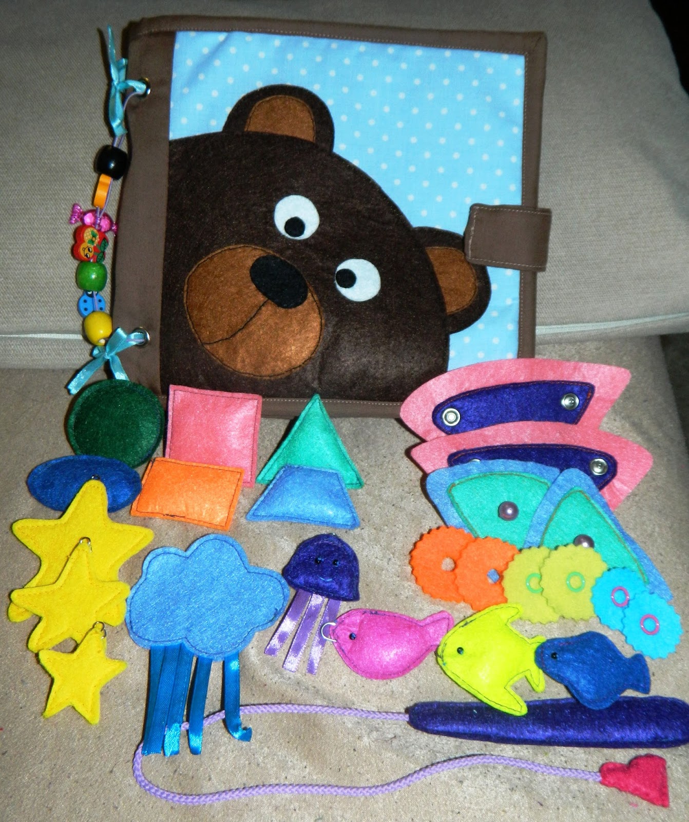 Покажу еще одну развивающею книжечку. Книжка шилась на заказ для подарка мальчику. При пошиве нужно было вложиться в бюджет и обязательно нужно было выполнить в коричневом цвете. Получилась простая книжечка из 4 страничек (8 листов) и с 25-ю съемными деталями.